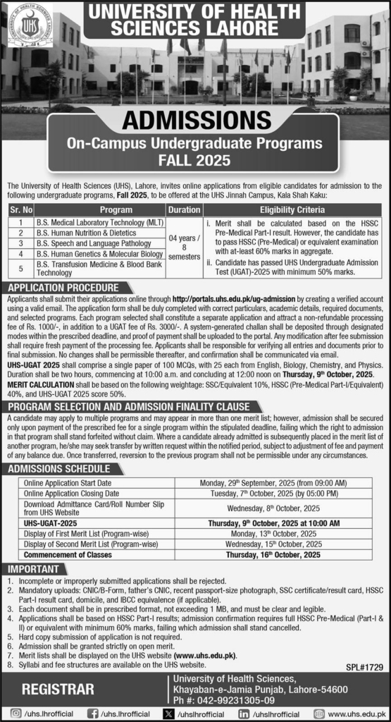 UHS (On Campus) Undergraduate Programs Admissions 2025