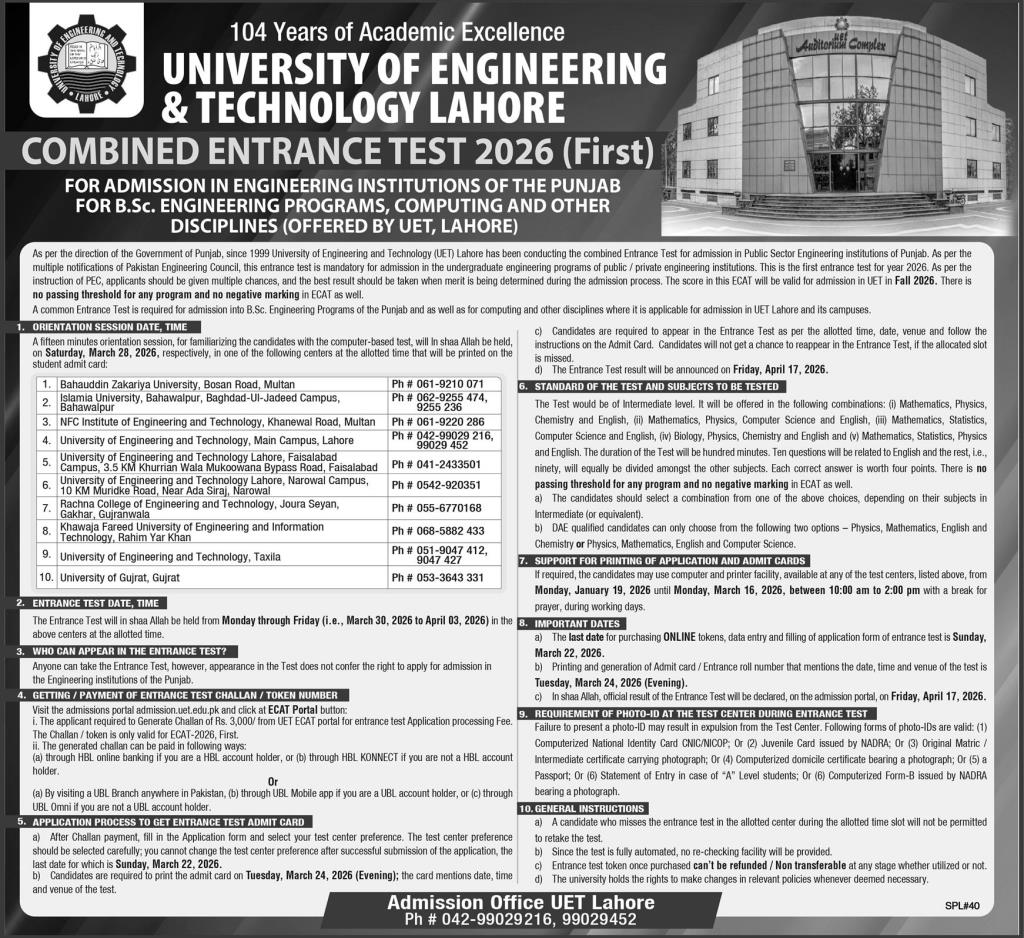University of Engineering & Technology-Lahore Admission Fall 2026 Jan 01, 2026 View Image Introduction
